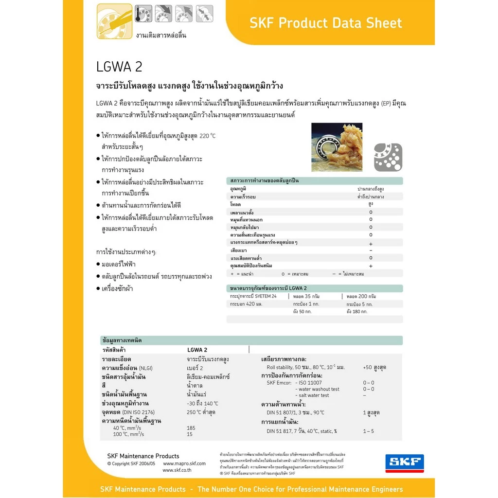 LGWA 2 คือ จาระบีคุณภาพสูง ผลิตจากน้ำมันพื้นฐานแร่ ใช้ไขสบู่ลิเธียมคอมเพล็กซ์ ด้วยคุณสมบัติดังกล่าว จึงทำให้ LGWA 2 ได้รับการแนะนำให้ใช้ในงานหลากหลายแบบในอุตสาหกรรมและยานยนต์
