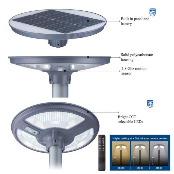 Philips Lighting ไฟโคมสนามทรง UFO แผงโซลาร์ในตัว Solar Post Top (ไม่รวมเสา) สว่าง 5000Lumen เลือกแสงได้ 3 โหมด 3000K, 4000K, 6500K ฟรีรีโมท